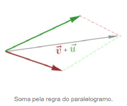 Sejam u e v dois vetores, ao somá-los, para determinarmos o módulo, sentido e direção do vetor resultante, devemos desenhar o paralelogramo definido por eles. Vejamos um exemplo com os vetores u e v: